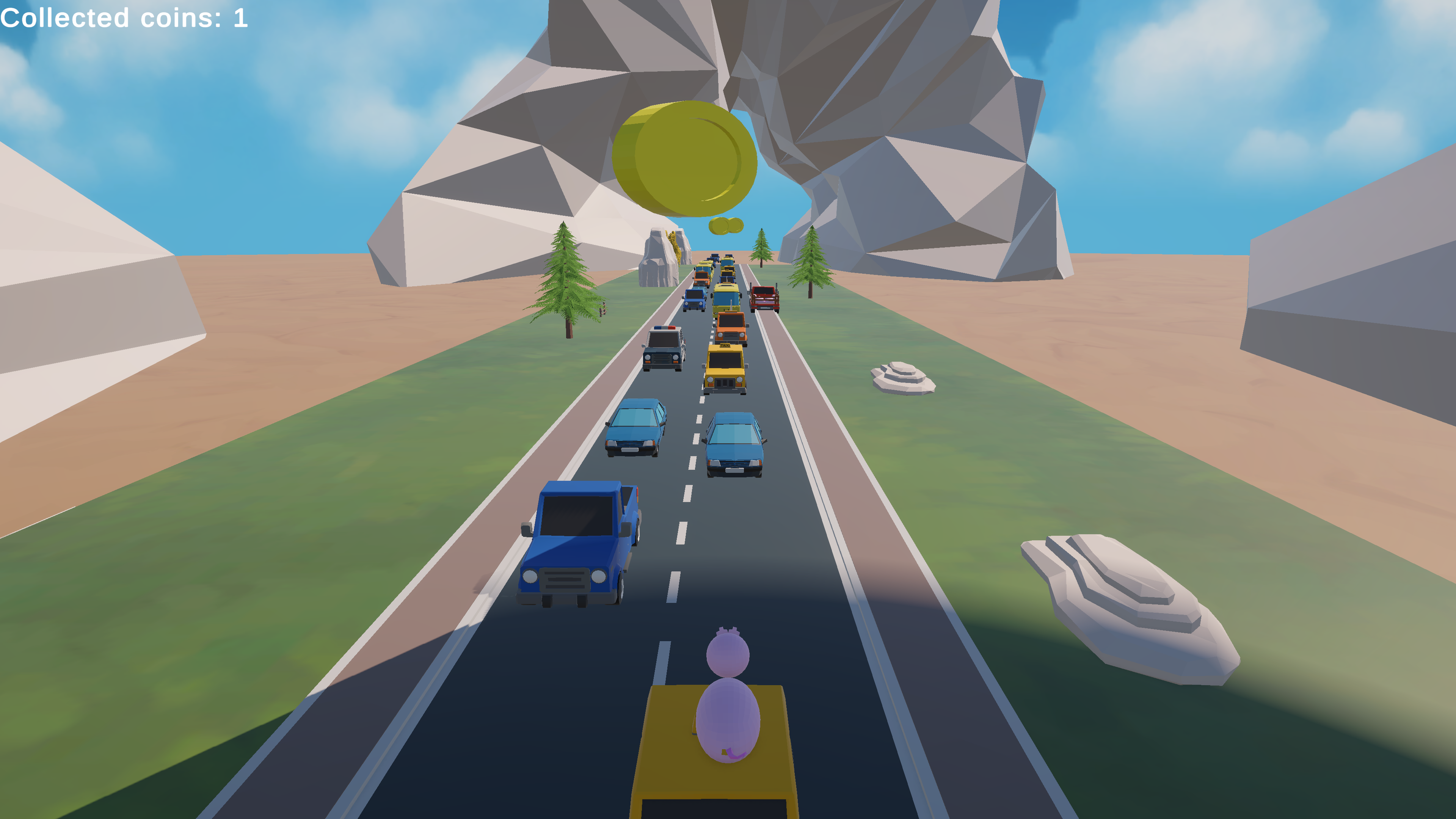 3D models (cars) are from Unity Asset store (from KOS store) and the skybox is from Boxophobic (also from Unity Asset store). FREE Skybox Extended. The main player (pig), gates, pigets and collectable coins were self made in Blender.